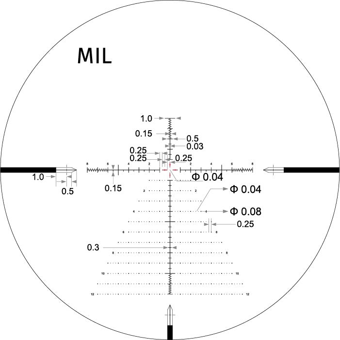 - Turret Adjustment: 1/10 MIL or 1/4 MOA
